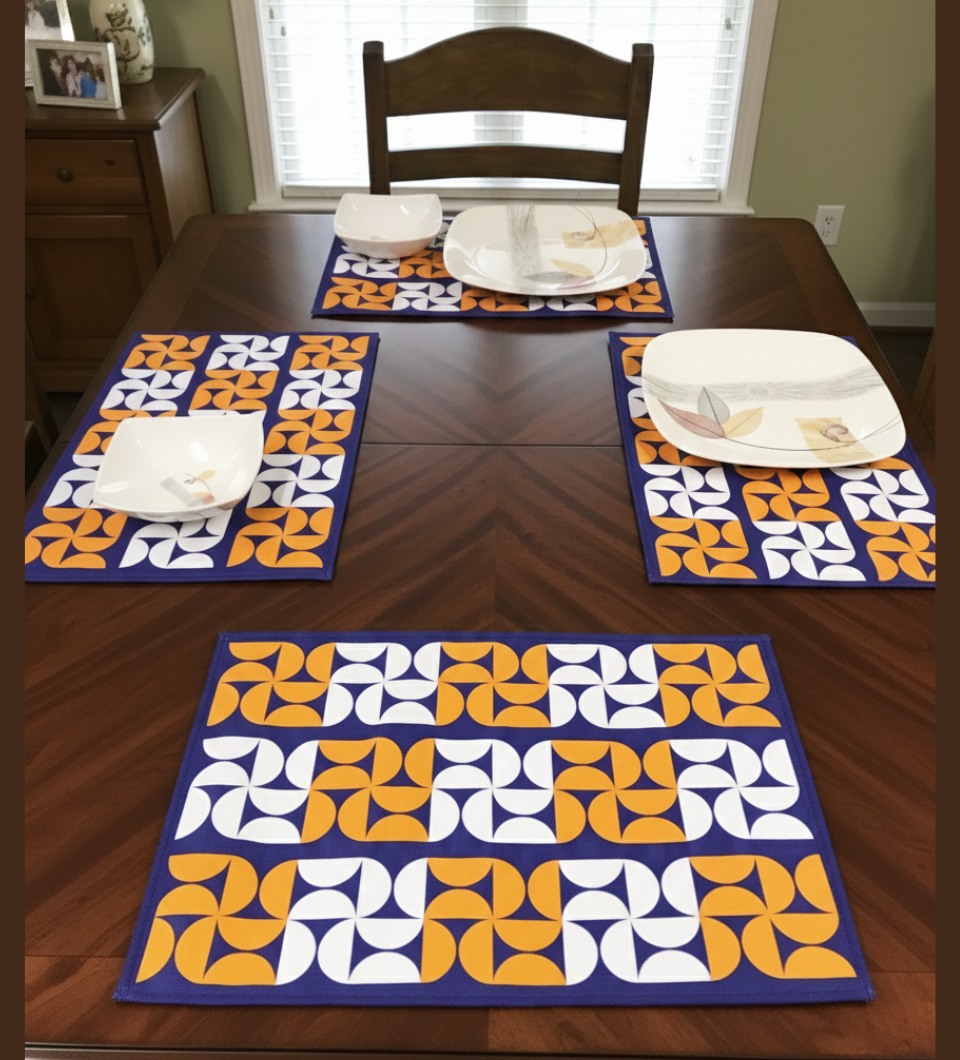 Crafted from high-quality canvas fabric, the mats are durable, lightweight, and designed for everyday use. They help protect your table surface from heat, spills, and scratches while enhancing your table setting. The vibrant geometric design complements both minimalist and colorful dinnerware, making this set ideal for daily meals and casual gatherings alike.