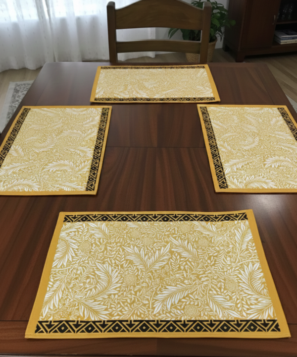 Add a bold and modern accent to your dining space with this Blue & Mustard Geometric Canvas Table Mat Set. Designed with a striking geometric pattern in deep blue and warm mustard tones, these placemats bring a contemporary yet elegant look to any dining table.